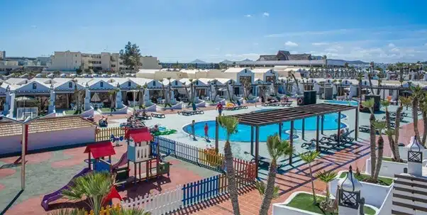 The THB Flora hotel is a family-friendly haven in Puerto del Carmen, offering a vibrant kids’ club, splash zones, and spacious family rooms. Parents can relax in tranquil gardens or indulge in the spa while kids are entertained. With lively entertainment for all ages and a prime location near beaches and attractions, it’s perfect for creating unforgettable family memories.