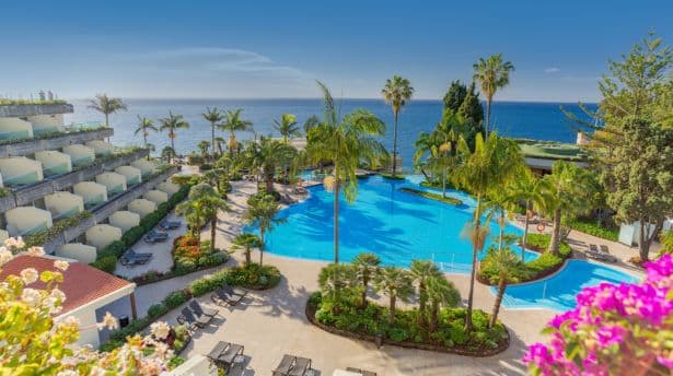 Perched on the cliffs of Funchal, the Pestana Carlton Madeira Ocean Resort delivers a seamless blend of oceanfront luxury and tropical peace. Guests can enjoy direct sea access, lush gardens, and contemporary rooms with panoramic Atlantic views. Its spa, pools (including saltwater pools, and proximity to Funchal’s marina make it an exceptional base for a luxury Madeira escape.