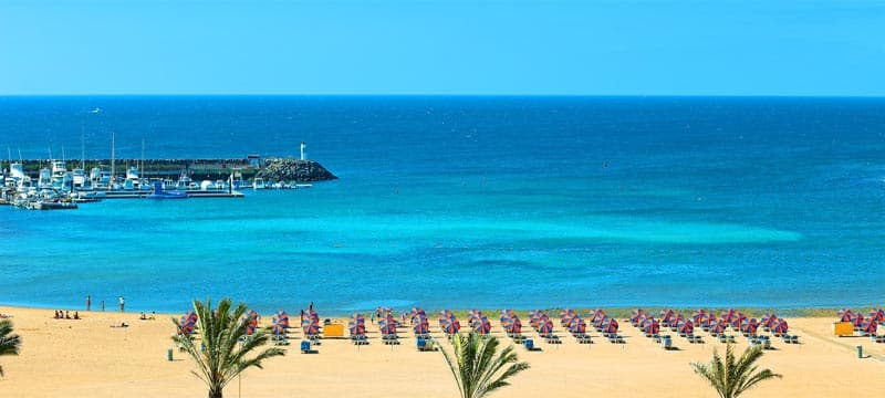 Caleta de Fuste Beach is an ideal place of relaxation for couples and for families, with it's turquoise waters and white sandy beaches.