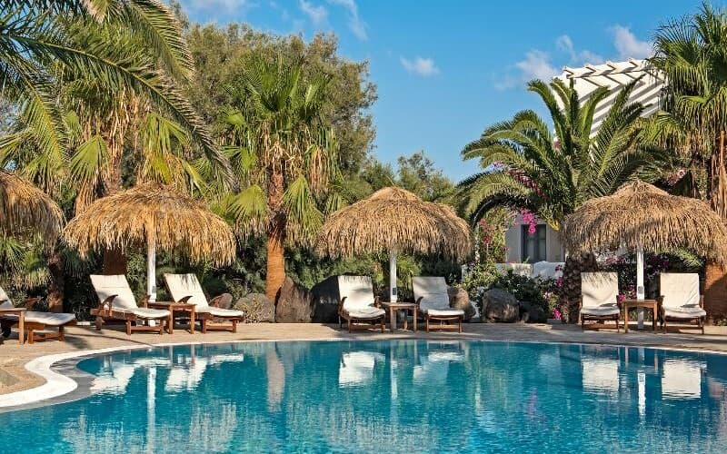 Spend the day unwinding by the pool, exploring ancient Akrotiri ruins, or visiting unique beaches with red, white, and even black sand. In the evening, savour local sweet white wine, dig into local cuisine, and enjoy breathtaking Santorini sunsets. One of our favourite spots to watch the sun go down is Akrotiri Lighthouse!