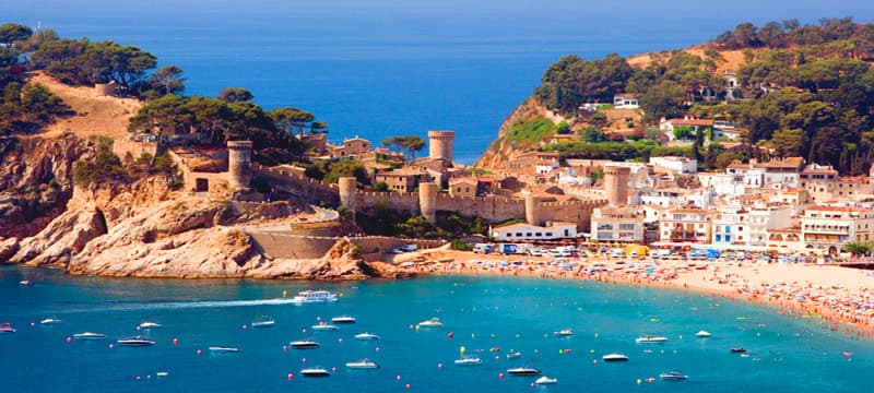 Holidays in Spain's Tossa de Mar are legendary in their own lifetime! A sparkling jewel on the Costa Brava, Tossa de Mar is located in Catalonia, approx. 100km north of Barcelona and equidistant from the French border to the south (Winter skiing in the Alps, anyone?). Well known for being the only fortified medieval walled town on the entire Catalonian coast, Tossa de Mar does not trade on any historical significance, but could easily boast of the incredibly picturesque and charming cobbled streets which meander around the Old Town (Villa Vella Enceinte) and the lovely Castle and watchtowers at the end of the beach.
